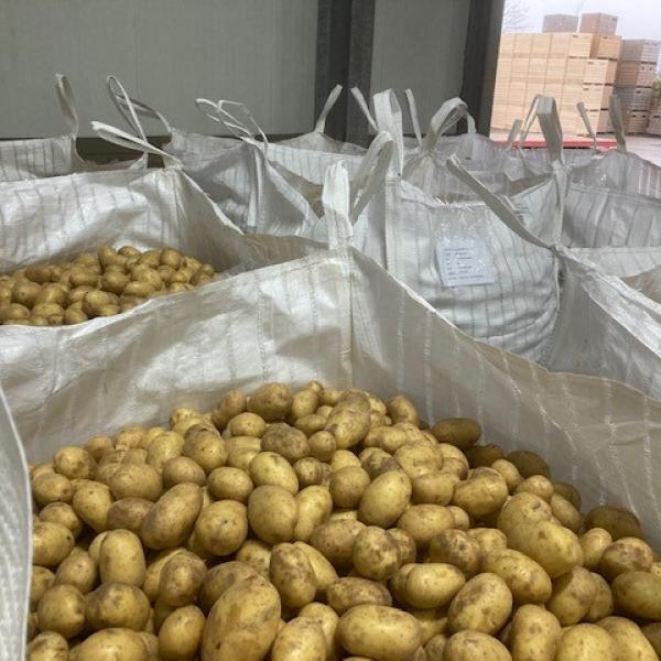 After washing, sizing and sorting in the export line, the potatoes are packed fully automatically in paper, poly, foil or big bags.